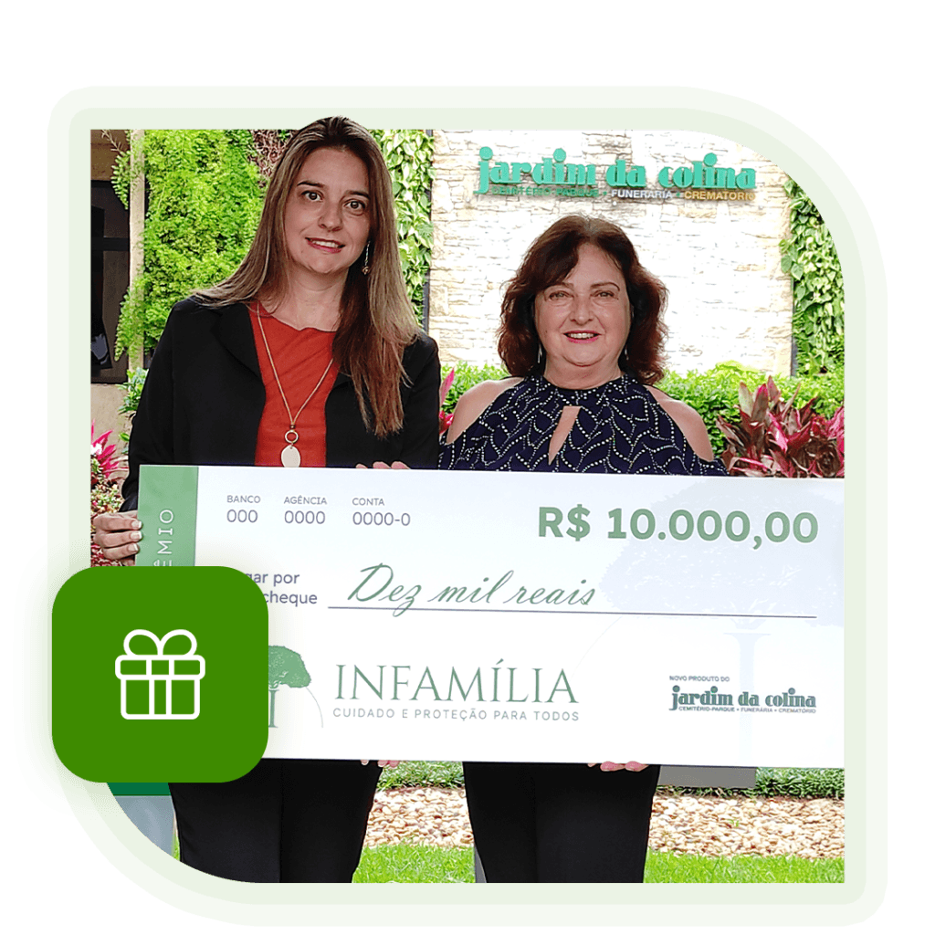 Além das coberturas funerárias, o InFamília oferece descontos em consultas médicas e odontológicas, exames, farmácias, telemedicina gratuita 24 horas, cashback em lojas parceiras e postos de gasolina, 4 sorteios mensais de R$ 10.000,00, e cesta básica por seis meses em caso de falecimento do titular.